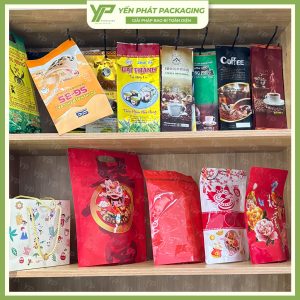 - Chất liệu: Thường được làm từ màng ghép nhiều lớp như PET/MPET/PE, PET/AL/PE, OPP/MPET/PE… để tăng khả năng chống ẩm, chống oxy hóa.